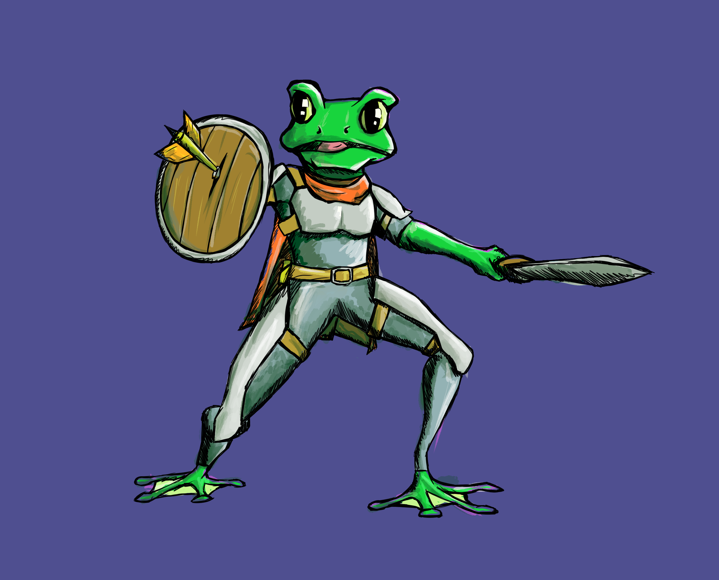 Here is another style test for my comic I will hopefully now get around to completing. This time, Frog Guy is sitting next to a fire. Ignore the background colour, that won’t be the final background on these tests.