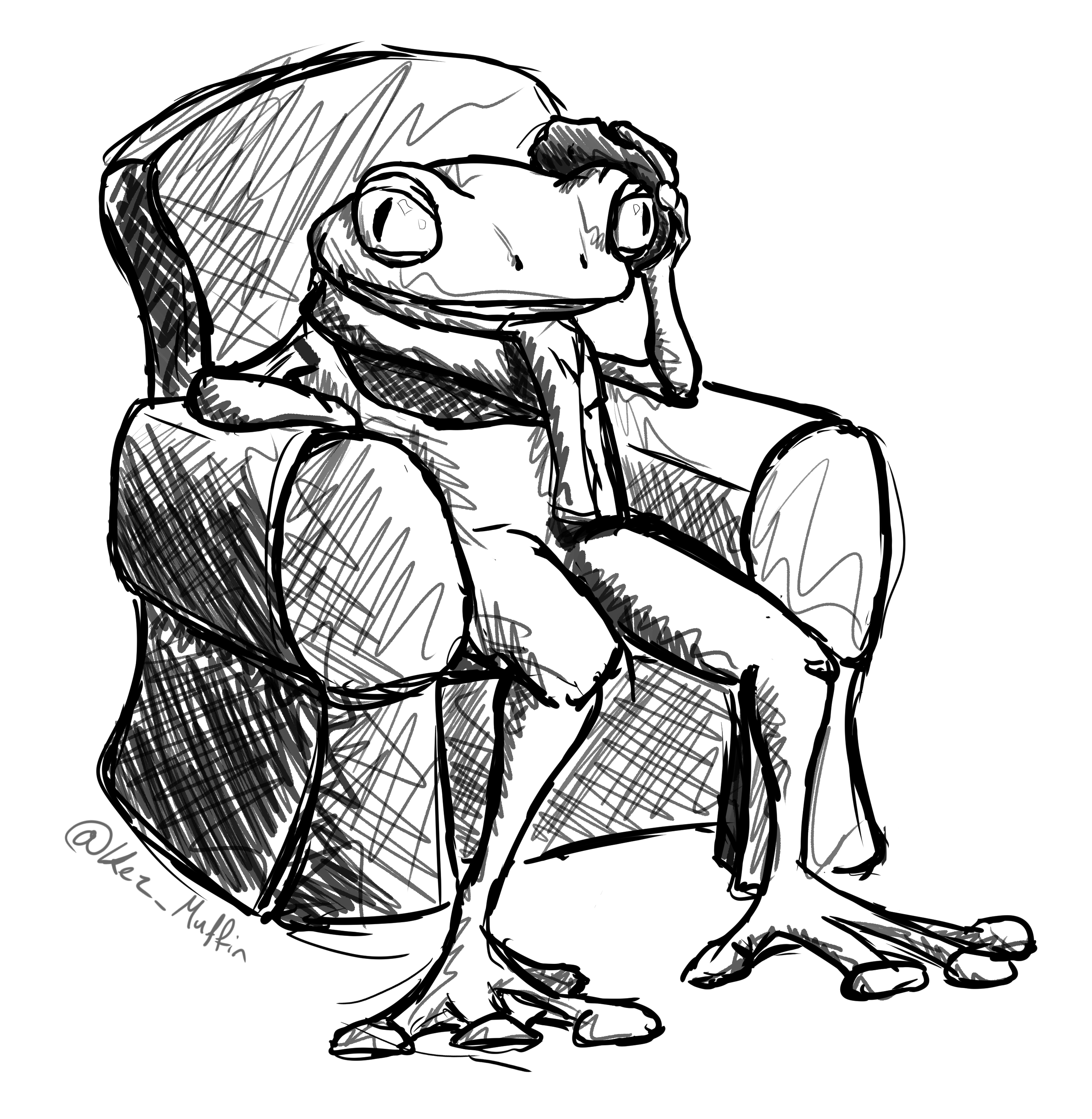 A little different today, just doing a sketch in clip studio because I don’t have my visual diary with me. Also getting back to the basics a bit because I have noticed while working on my comic that my frog head likeness has started to slip away a little.